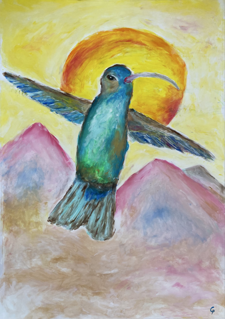 Diese Bilder sind einzigartig und nur mit Hilfe von Bleistift, Kreide, Gouachefarbe und meinen Fingern gemalt. Ich benutze keinen Pinsel